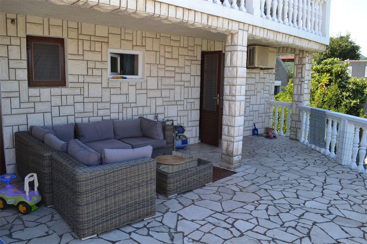 DetaljnijeSmješten na 2 katu ima terasu sa pogledom na more, kuhinju/blagovaonu, bračni krevet i kupaonu.